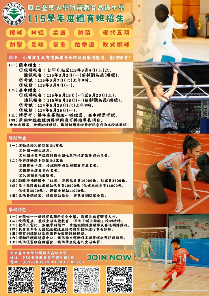 國立臺東大學附屬體育高級中學統一編號:78862616