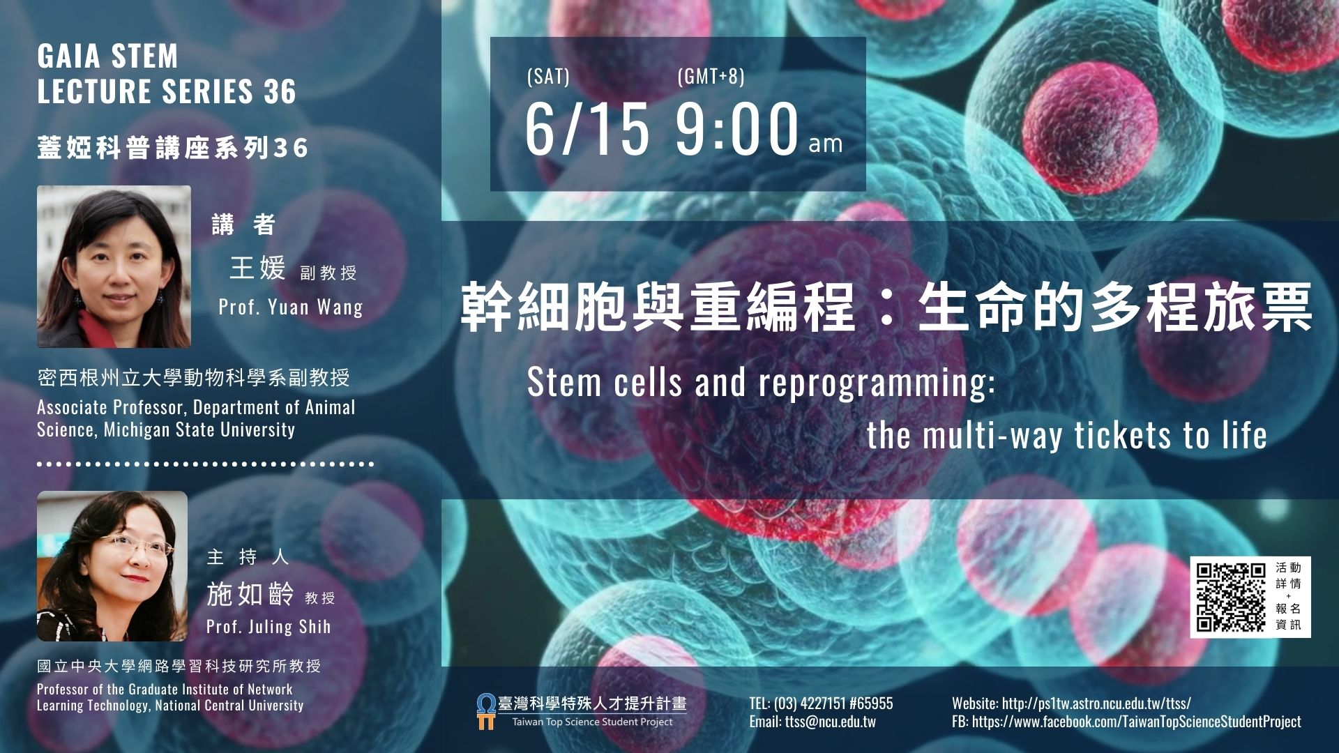 一、 本次講座由密西根州立大學王媛副教授分享其對於幹細胞的研究,幹細胞具有能分化成身體各種細胞的潛能,透過研究幹細胞除了可以了解生命延續機制、生命週期,也有助於我們對不孕症的治療。