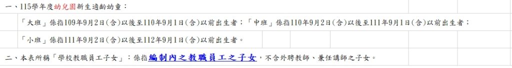 國立臺東大學附設實驗國民小學 115學年度新生入學調查表Post category:人事室 / 人事室最新公告 / 各處室公告Post last modified:2026-01-07Post author:人事室請有意願並符合條件之同仁,務必填妥調查表單(國小部、幼兒園),於1月16日(星期五)下班前寄至人事室同仁信箱,逾期不予受理。任何問題請洽分機1521、15221151290071_1_A09690100Y_1150000028B_ATTACH1-1 Post Views: 16Read more articles上一篇文章【公告】自115年1月1日起,公務人員每人每年最低學習時數及業務相關學習時數內涵調整下一篇文章「增設國高中部一樓走廊燈具及定時器控制組作業」擬公開徵求原住民廠商報價單