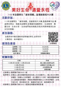一、 旨揭「獅子會」,為世界最大公益社團之一,本次舉辦旨揭活動,透過參賽作品,傳達理念、想法、情感及故事等,宣導器官捐贈理念,鼓勵行善至終之生命教育意義。