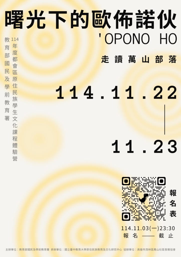 [活動]114年度都會區原住民族學生文化課程體驗營|曙光下的歐佈諾伙’Opono ho~走讀萬山部落~