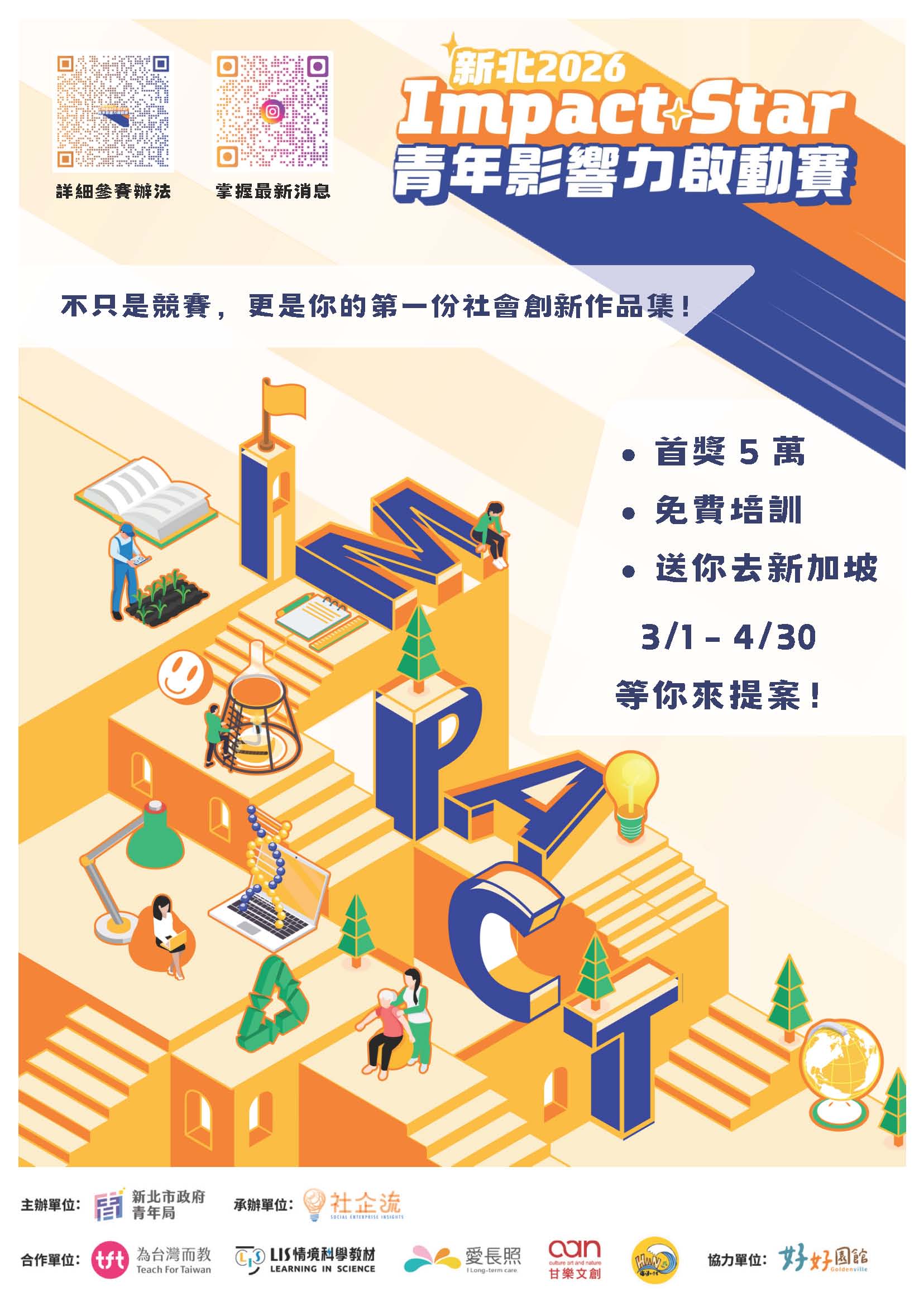 (五)活動時程與參加辦法詳見IG (@ntpc.youth.power)及網址:https://ntpc-impactstar-2026.tw/青年影響力啟動賽。