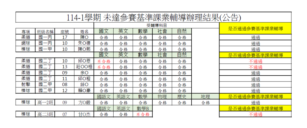 114-1未達參賽基準課業輔導_辦理結果Post category:各處室公告 / 教務處 / 教務處公告Post last modified:2025-11-18Post author:教學組114-1未達參賽基準辦理公告1028下載 Post Views: 92Read more articles上一篇文章「查修校內13台飲水機作業」擬公開徵求原住民廠商報價單下一篇文章「行李箱10個」擬公開徵求原住民廠商報價單