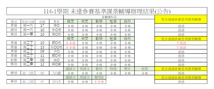 114-1未達參賽基準課業輔導_辦理結果Post category:各處室公告 / 教務處 / 教務處公告Post last modified:2025-11-12Post author:教學組114-1未達參賽基準辦理結果下載 Post Views: 5Read more articles上一篇文章「查修校內13台飲水機作業」擬公開徵求原住民廠商報價單