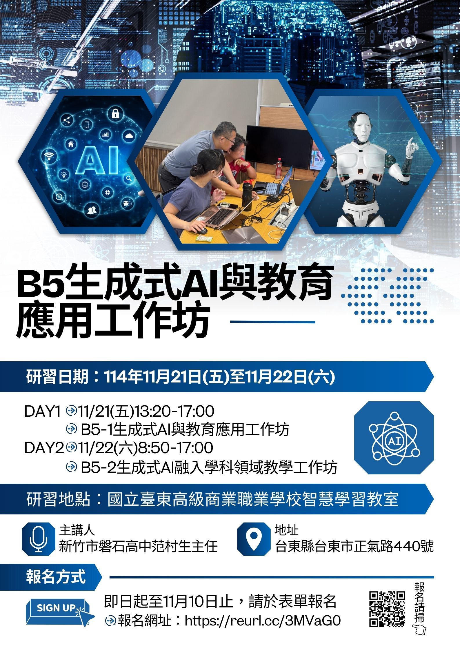 (二)地點:國立臺東高級商業職業學校智慧學習教室,採實體辦理。