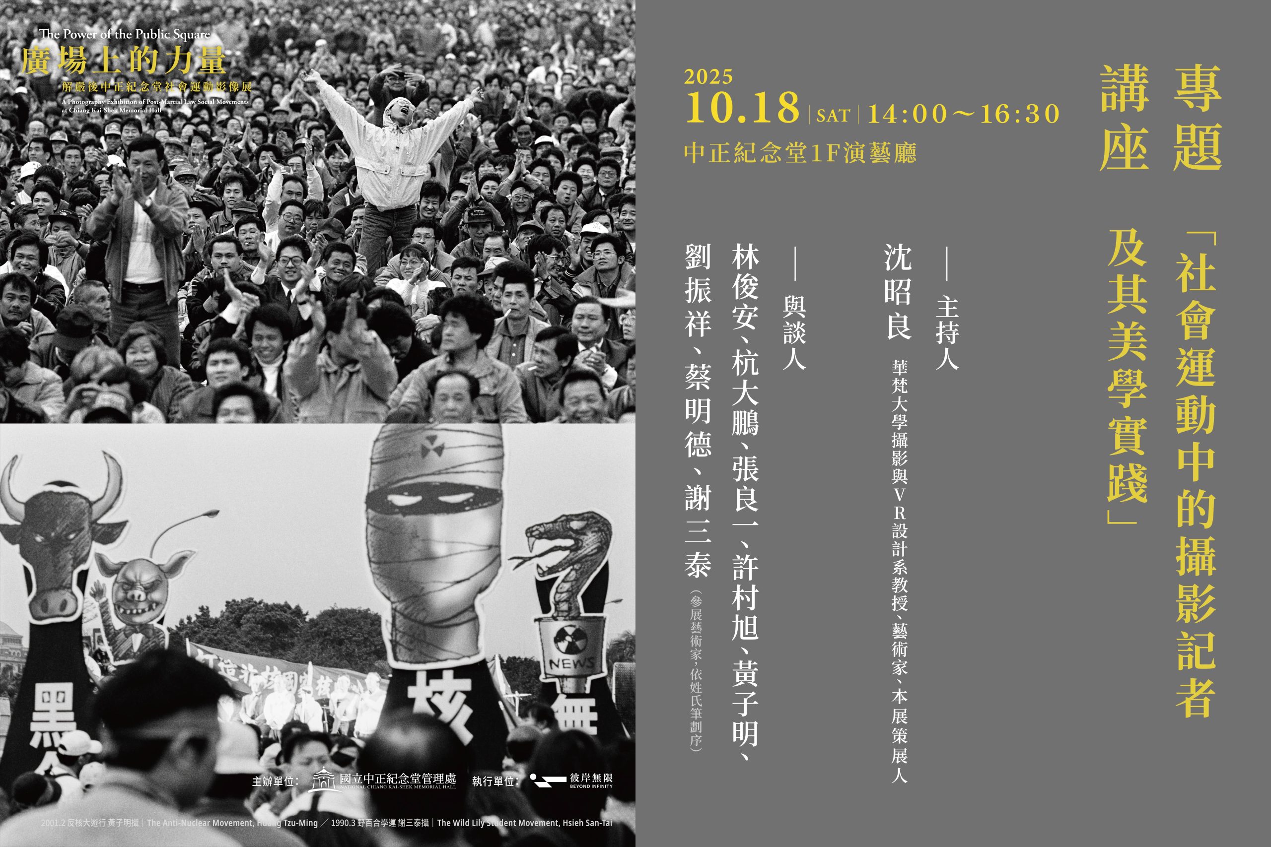 中正紀念堂管理處辦理「社會運動中的攝影記者及其美學實踐」專題講座資訊及報名連結,鼓勵報名參加。Post category:學務處Post last modified:2025-10-15Post author:ntpehs015旨揭活動展覽日期自114年9月4日至11月5日止,展覽專題講座辦理於10月18日(星期六)下午2時假中正紀念堂1樓演藝廳,詳情請見該處來函、展覽海報及講座文宣。附件一下載附件二下載附件三下載 Post Views: 6Read more articles上一篇文章城市學校財團法人臺北城市科技大學2025三創競賽 城市美聲盃航空廣播詞競賽活動簡章,城市學校財團法人臺北城市科技大學觀光事業系辦理「2025三創競賽 城市美聲盃航空廣播詞競賽」,敬邀師生共襄盛舉參與本次競賽,並核予出席人員公(差)假。下一篇文章國立中央大學臺灣太空科學聯盟謹訂於本(114)年10月26日(星期日)09:00~18:00,於國立中央大學研究綜合大樓暨大禮堂(教研大樓)和羅家倫講堂舉辦「第七屆衛星科學工作坊暨臺灣太空科學聯盟學生日」活動(海報如附件),鼓勵學生踴躍報名參加。
