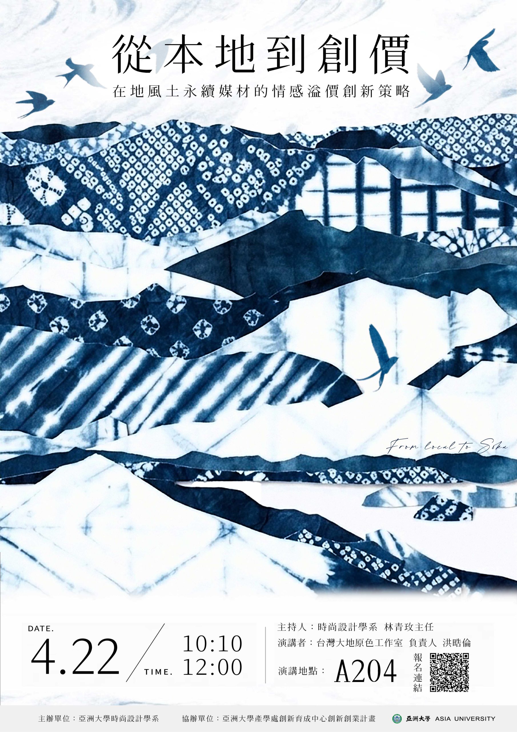 二、 染色系列講座一:從本地到創價,在地風土永續媒材的情感溢價創新策略。