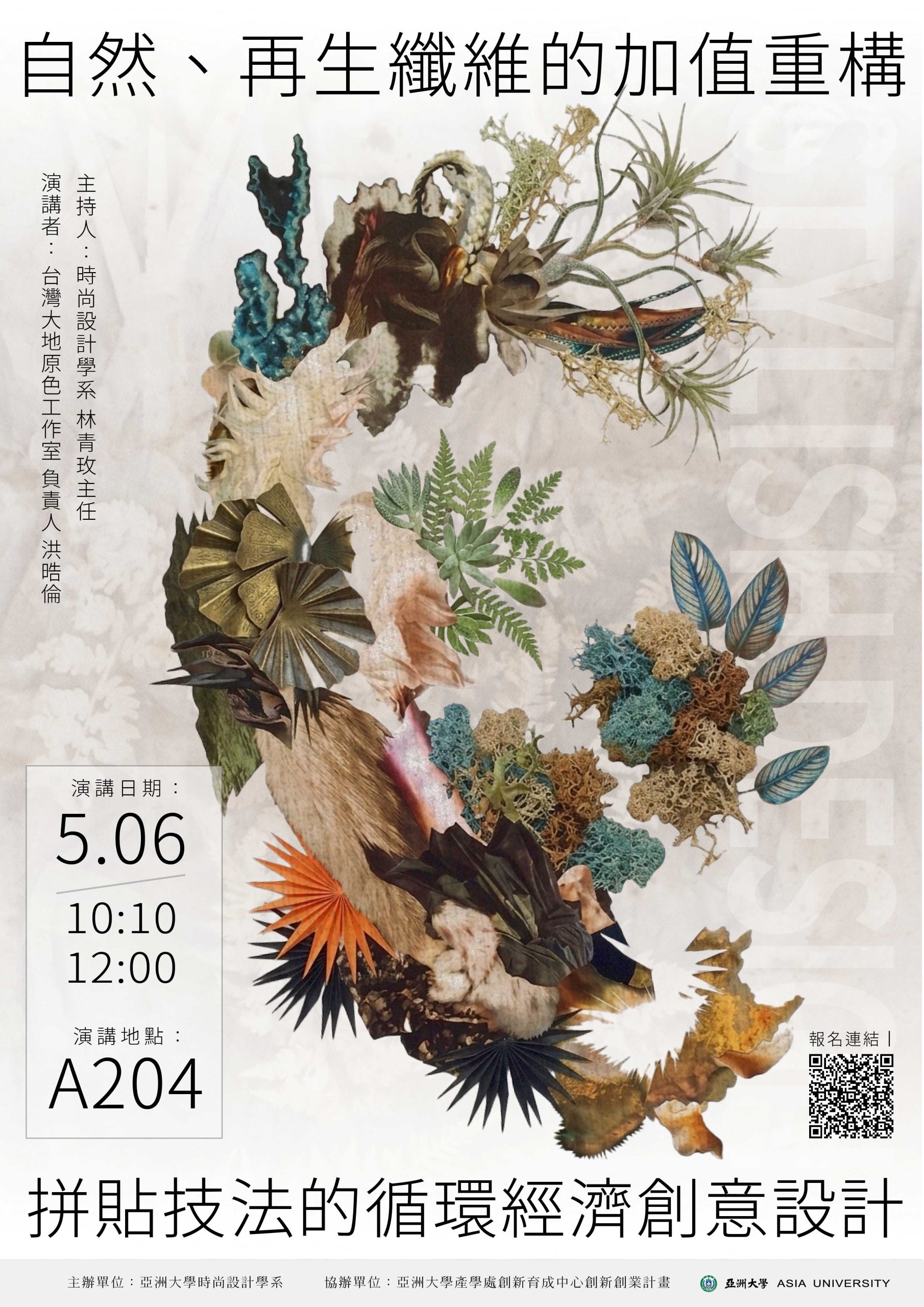 三、 染色系列講座二:自然、再生纖維的加值重構,拼貼技法的循環經濟創意設計。