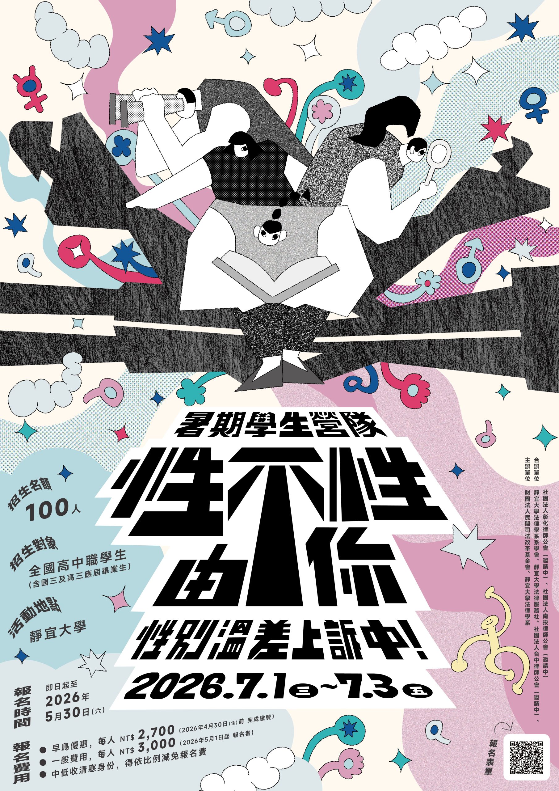 一、 營隊宗旨:透過性別與法治議題探討、司法實務體驗及模擬法庭演練,引導學生覺察社會中的性別偏見,培養法治思辨能力與公共參與意識。