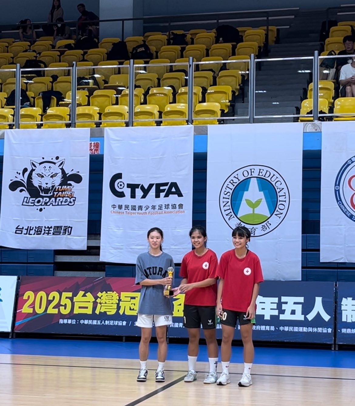 恭喜本校足球隊參加2025台灣冠軍盃五人制足球錦標賽榮獲亞軍~Post category:運動榮譽榜Post last modified:2026-02-25Post author:國中部幹事 余家蕙恭喜 本校足球隊參加 #2025台灣冠軍盃五人制足球錦標賽 榮獲 第二名 金靴獎~孫瑞琳、馬稚甯 太厲害了恭喜所有選手及教練團 Post Views: 8Read more articles上一篇文章賀!賀!賀!本校高中部棒球隊參加「2025美國貝比魯斯聯盟世界棒球錦標賽」榮獲鑽石組冠軍和亞軍~下一篇文章射箭隊》賀!本校黃少谷同學勇奪「2025世界青年暨青少年射箭錦標賽」U18複合弓男子團體銅牌~