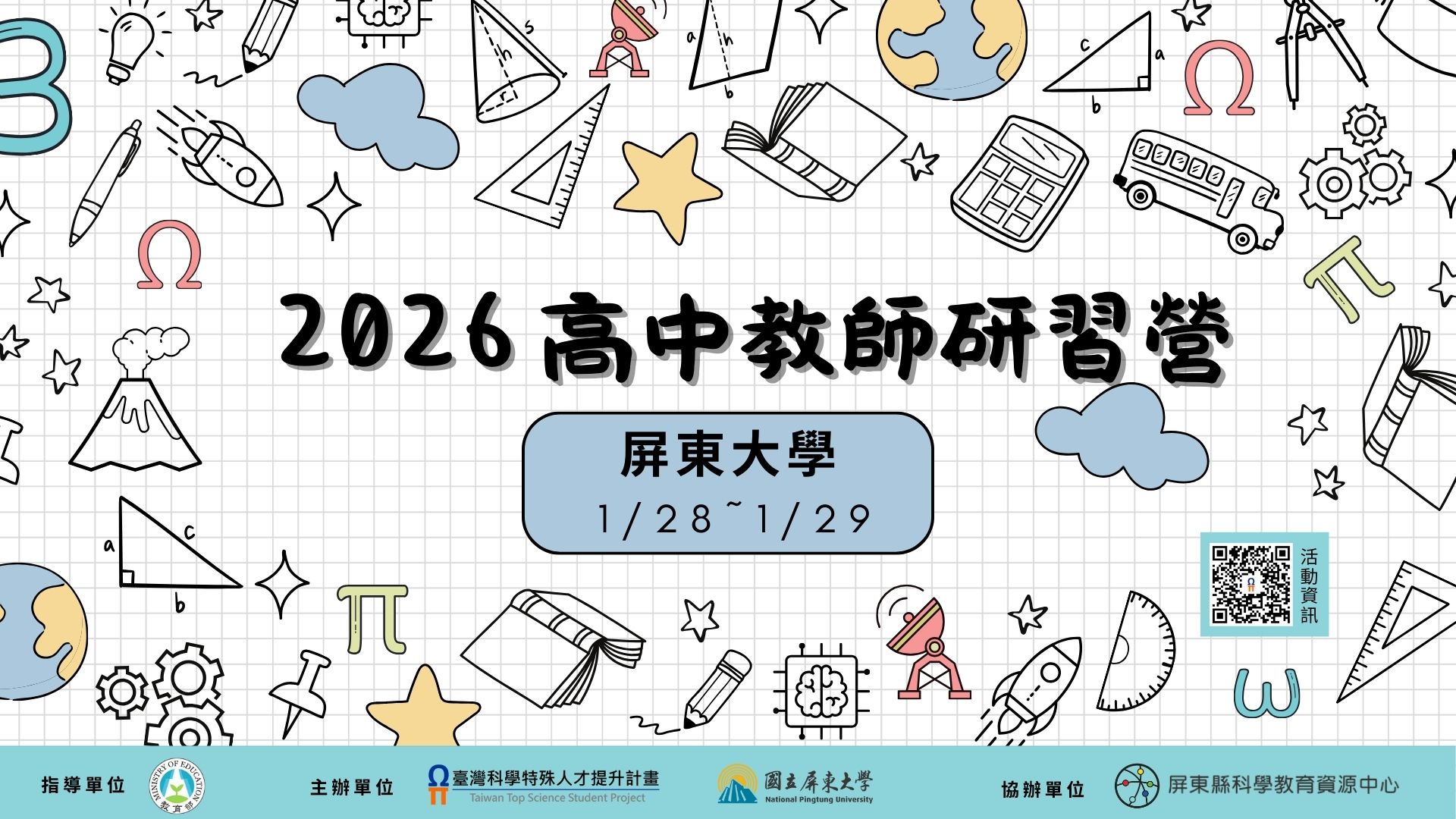 國立中央大學訂於115年1月28日至29日辦理「2026高中教師研習營–屏東大學場次」